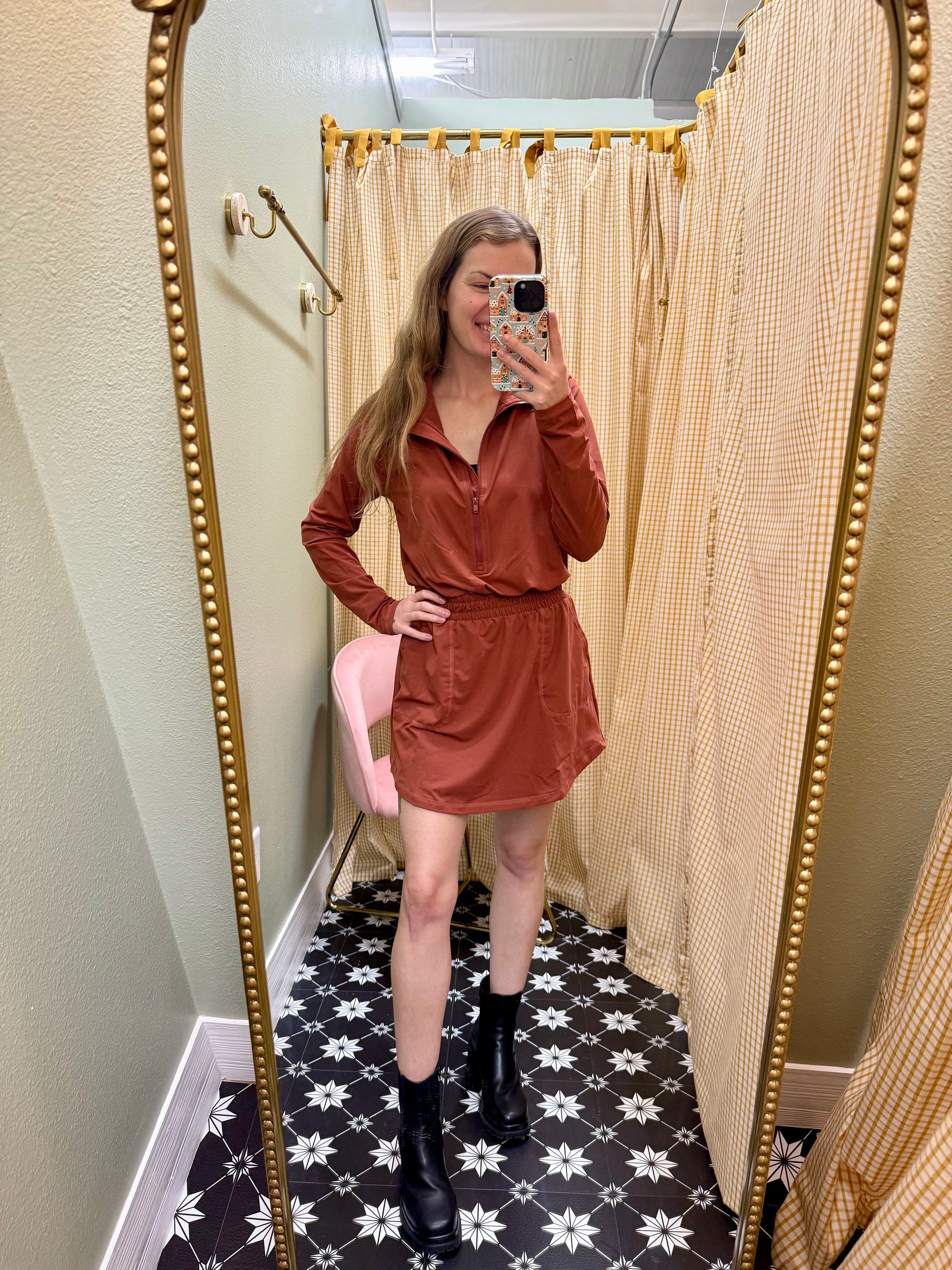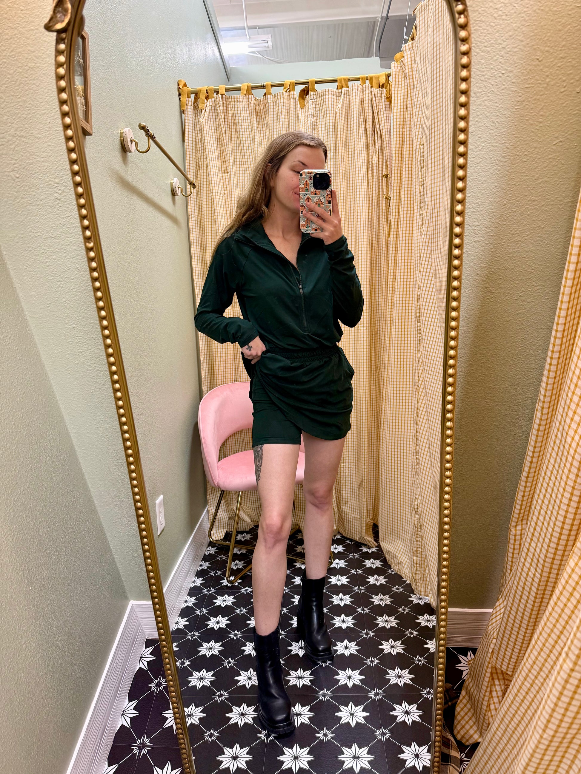 Sleek and functional, this long-sleeve romper dress is crafted from recycled butter-soft fabric with a 4-way stretch. Designed with a mock neck, quarter-zip closure, elastic waistband, and side pockets, plus built-in shorts for all day coverage and comfort. Perfect for on-the-go or casual days with a sporty twist.